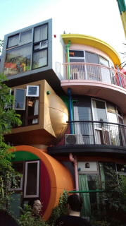 この全部で9戸の集合住宅は、内外装に14色の鮮やかな色が施され、一部屋一部屋の色の組合せが全く異なることから、「極彩色の死なない家」(瀬戸内寂聴氏)として、東京西郊外の三鷹市のランドマーク的存在にもなっています。この建物の大きな特徴は訪れた人の身体を揺さぶる感覚が、人間の持つ可能性に気づかせてくれることにあります。私たちが多くの時間を過ごす住宅。荒川修作+マドリン・ギンズの長年の研究から、一人一人の身体が中心となるよう、設計・構築された空間と環境は、建築界にも大きな衝撃を与えています。また、芸術作品の中に住める住宅として、今後の芸術が担うべき社会での役割の新しい提案ともいえるでしょう。